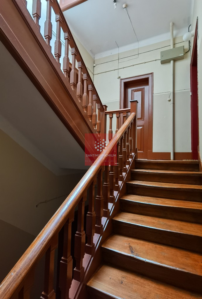Apartamento que mantêm as janelas com portadas de madeira originais.